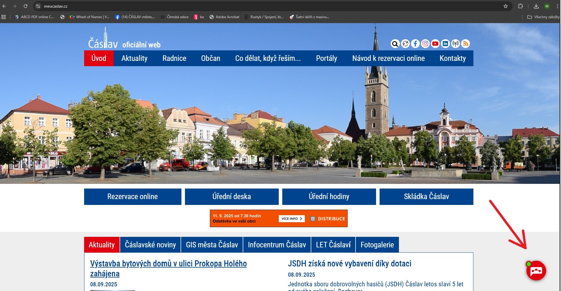 Chettyho najdete v pravém spodním rohu po otevření webové stránky města Čáslavi.